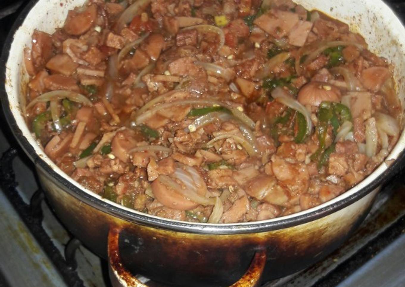 - Después de un rato vaciar el chile, tomate y cebolla picados en cuadros. Y agregarle otro poco de jugo maggie. Dejar guisar durante 10 min y listo. Queda delicioso