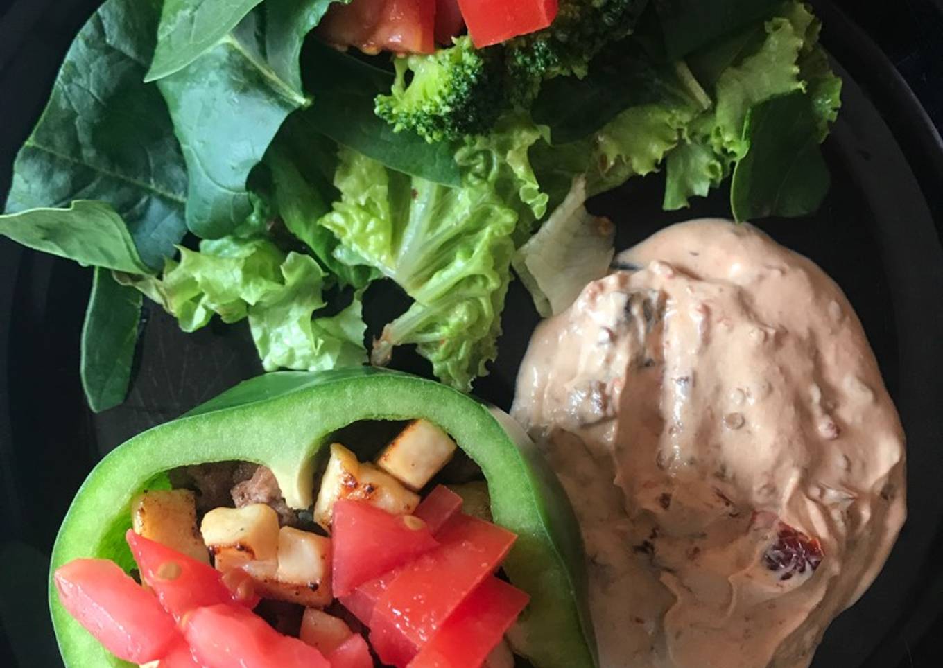 Pimientos luxury con ensalada y deep de chipotle