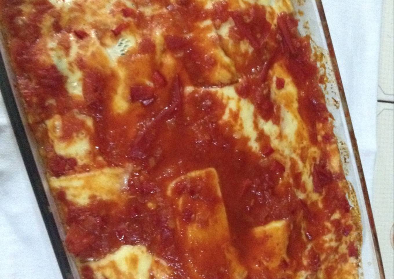 - En un recipiente refractario hacer capas de zuquini, espinacas, zanahoria, carne, Chile y cebolla. Dividir la salsa y el queso en 3 y poner en cada capa.