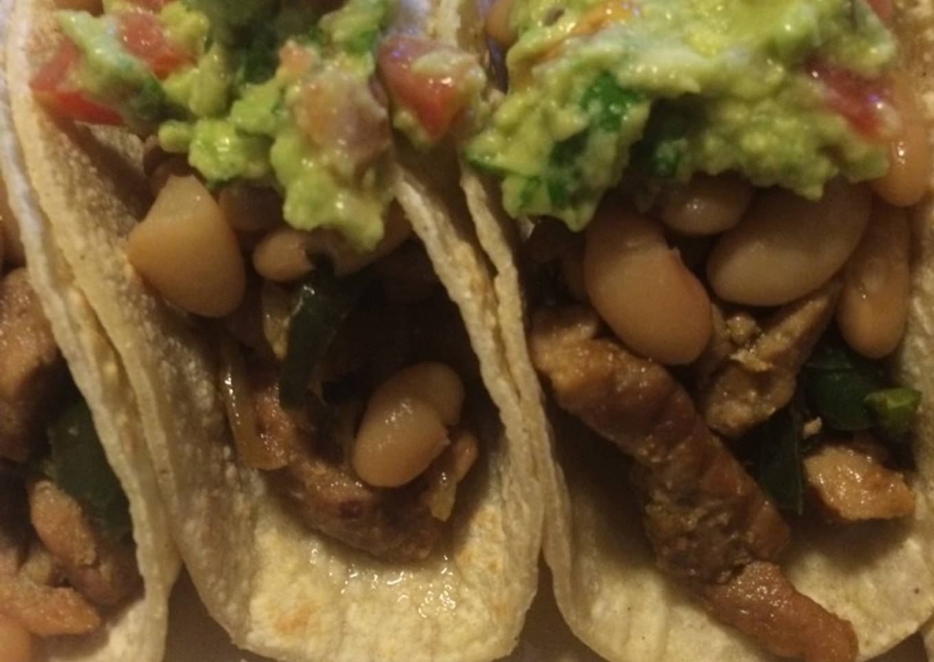 - Pones carne de chuletas en tu tortilla, frijoles recien cocidos, y abundante guacamole!!! Y a saborear!!! Provecho!!!
