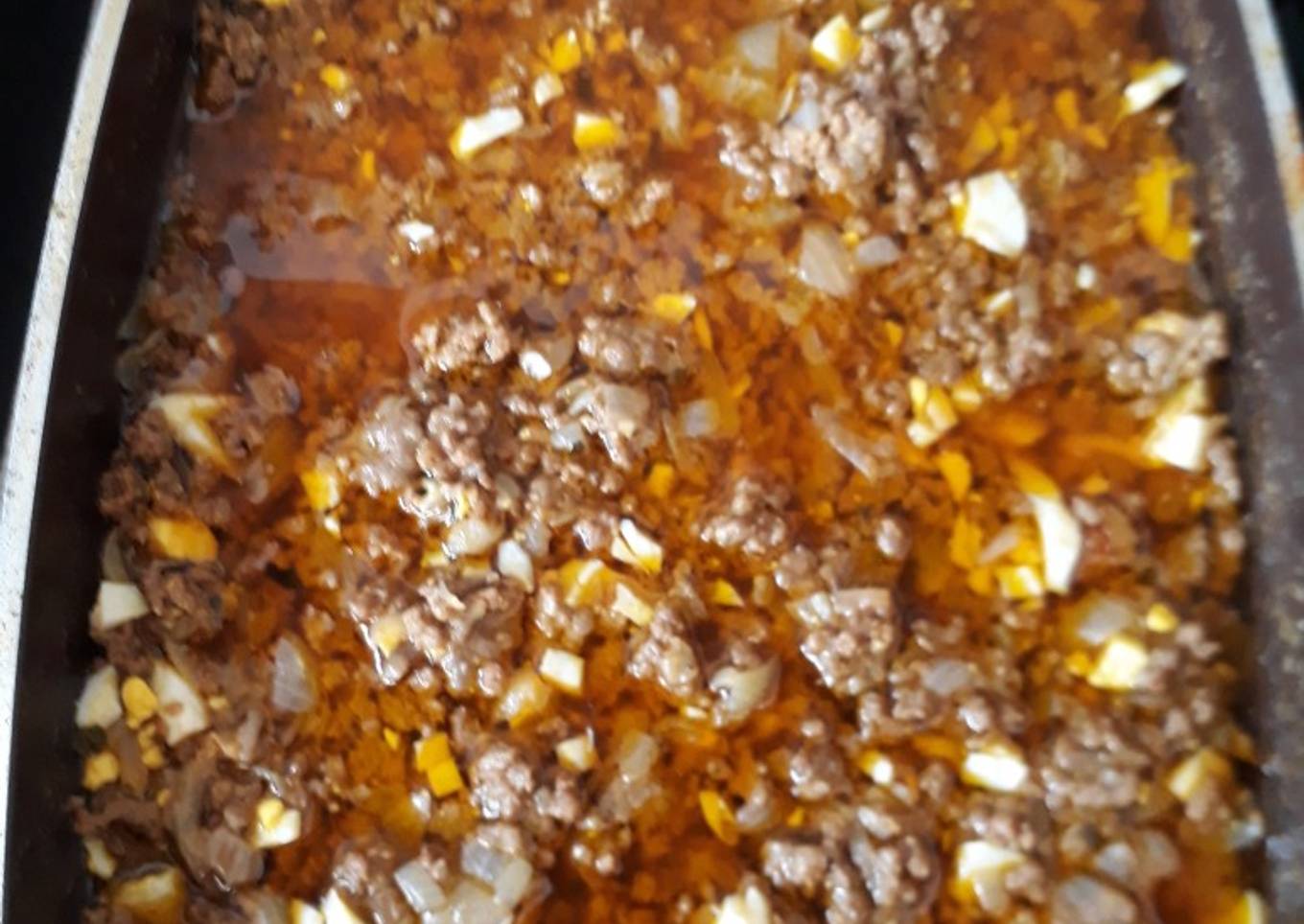 - Colocar la carne molida a fuego lento, agregar la cebolla Y revolver de vez en cuando para que no se pegue. Colocar sal, pimienta roja