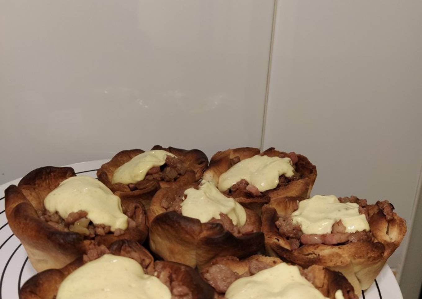- Rellenamos las cestas y ponemos un poco de salsa encima de cada una.