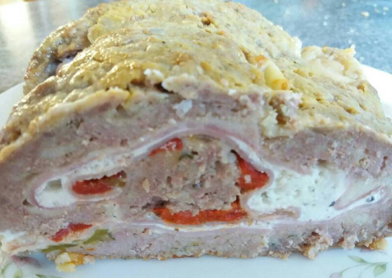 Rollo de carne picada relleno de jamón y queso