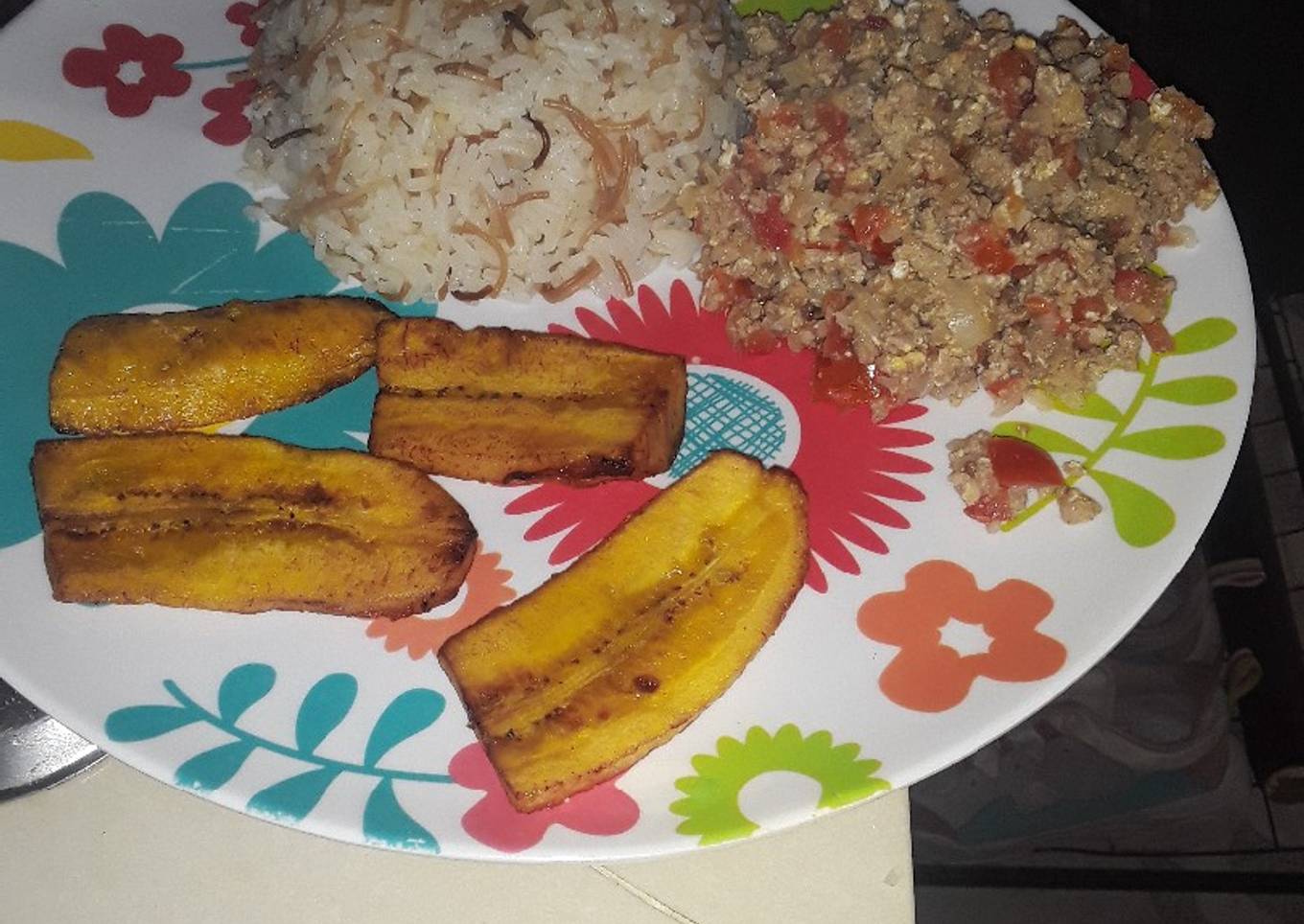 - Cocinar la carne molida en un poquito de agua, picar aparte el tomate en cuadros pequeños y la cabezona en un sartén. Sofreír con el poquito de aceite agregar los condimentos, escurrirle el agua a la carne y añadir a la preparación anterior agregar el huevo y revolver hasta que este sequito.