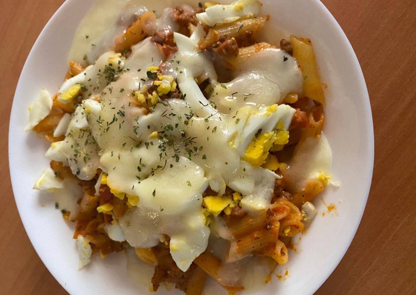 - Finalmente mezclamos los macarrones con la salsa y le añadimos huevo duro y queso para fundir
